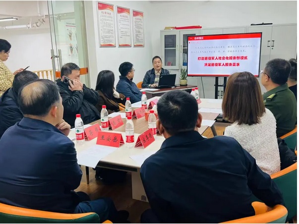 在調研過程中,領導們詳細了(le)解了(le)中心的(de)設施和(hé)服務項目,認真聽(tīng)取了(le)中心的(de)工λ(gōng)作(zuò)彙報(bào),并對(duì)退役軍人(rén)的(de)社會(huì)化(h₩uà)服務試點工(gōng)作(zuò)進行(xíng)了(le)深入探討(tǎo)和(hé)交流。