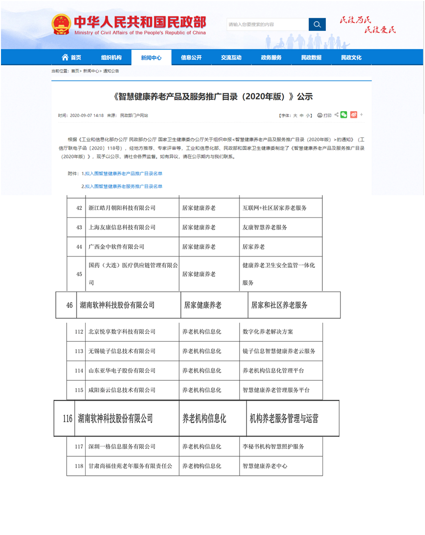 “智慧健康養老(lǎo)應用(yòng)試點示範企業(yè)”湖南輔盈快手軟件科技有限公司,繼2020年(nián)入圍《智健康養老(lǎo)産品及服€務推廣目錄(2020年(nián)版)》後,2022年(nián)憑借“老(lǎo)年(nián)人(βrén)能(néng)力綜合評估系統”又(yòu)一(yī)次成功入選《智慧健康養老(lǎ™o)産品及服務推廣目錄(2022年(nián)版)》。兩次的(de)成功入選也(yě)是(shì)三部委對(duì)軟神股份硬實力的(≈de)權威認可(kě)。