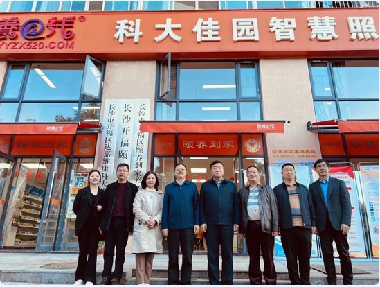 20日(rì),湖(hú)南(nán)省政協副主席李民(mín)、湖(hú)南(nán)女(nǚ)子(zǐ)學院副校(xiào)長(cháng)石潇純一(yī)行(xín♣g)莅臨科(kē)大(dà)佳園智慧照(zhào)護中心(以下(xià)簡稱“中心”)指導工(gōng)作(zuò),開(kāi)福區(qū)退役軍人(rén)事(shì)務局黨組書(shū)記、局長(chán→g)張瀾、公司董事(shì)長(cháng)唐羅生(shēng)等陪同接待。